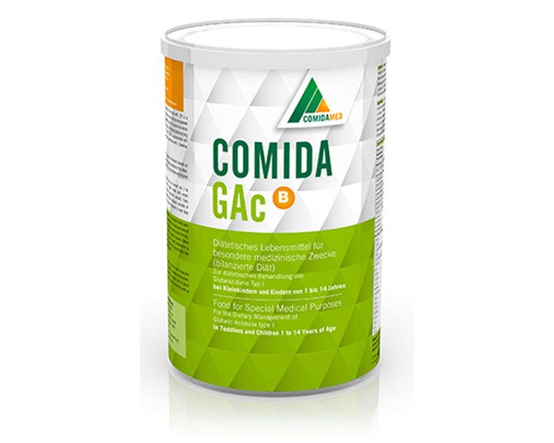 comida-GAc Bconsists of a concentrated mixture of essential amino acids, free from Lysine and low in Tryptophan, enriched with Carnitine and supplemented with micronutrients according to current international recommended dietary intakes for children (DACH; SCF; DRI).