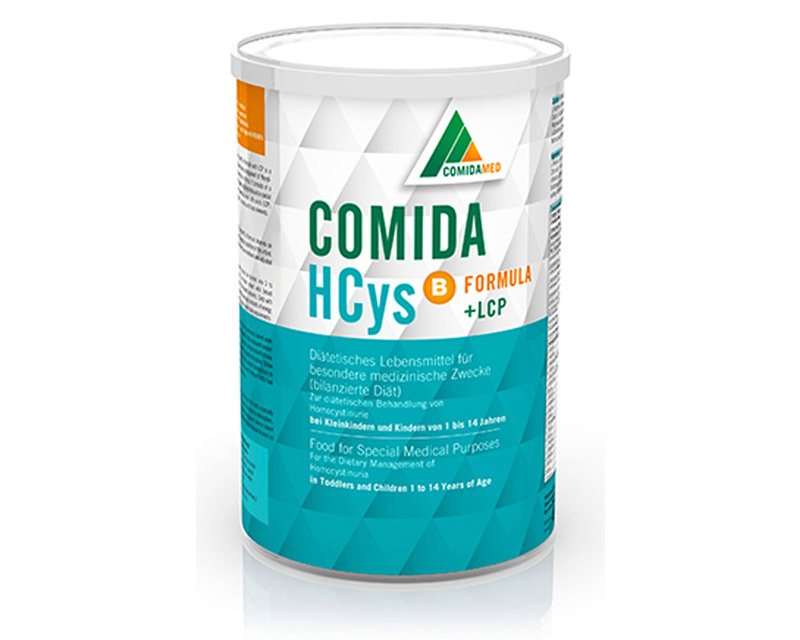 comida-HCys B formula consists of a special formula free from methionine, containing omega-3, omega-6 fatty acids and carbohydrates according to current international recommended dietary intakes for children (DACH; SCF; DRI).