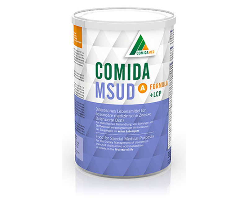 comida-MSUD A formula consists of a special infant formula free from Leucine, Isoleucine and Valine, containing fat and carbohydrates according to standard infant formulas - supplemented with all essential micronutrients (EU Infant Formula Directive; SCF; DRI).