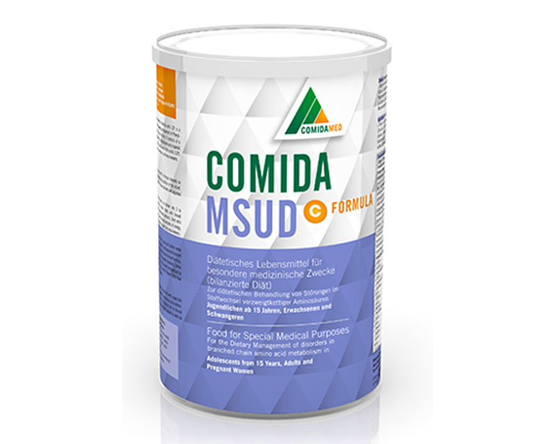 comida-MSUD C Formula consists of a special formula free from isoleucine, leucine and valine, containing omega-3, omega-6 fatty acids and carbohydrates according to current international recommended dietary intakes.